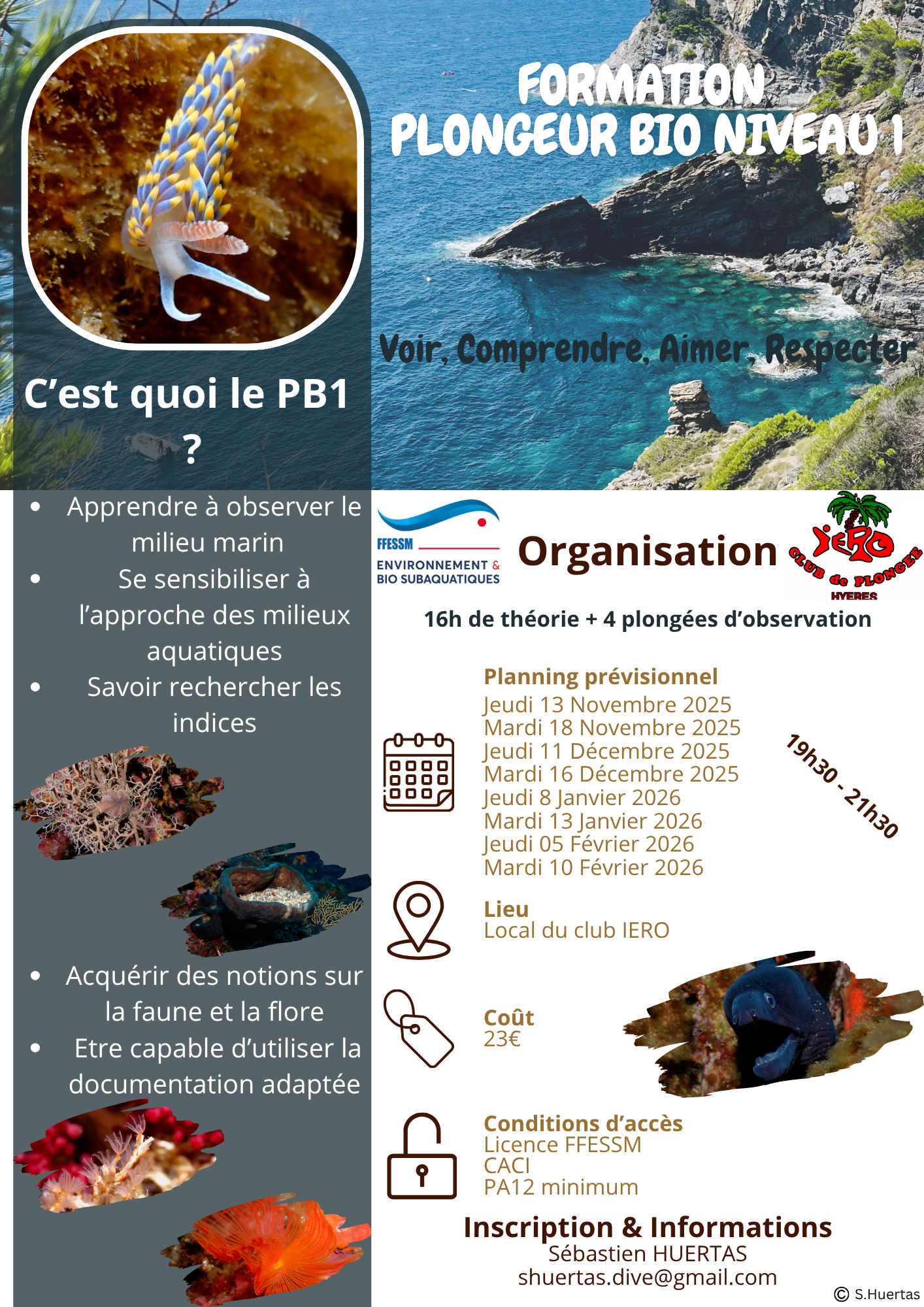 Formation PB1 organisée par le club IERO (Var) de novembre 2025 à février 2026